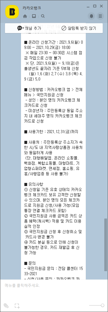 성인은 본인이 사용하는 체크카드나 카드사 홈페이지 나 앱을 통해서 신청이 가능하며, 미성년자는 세대주에게 지급된다합니다.