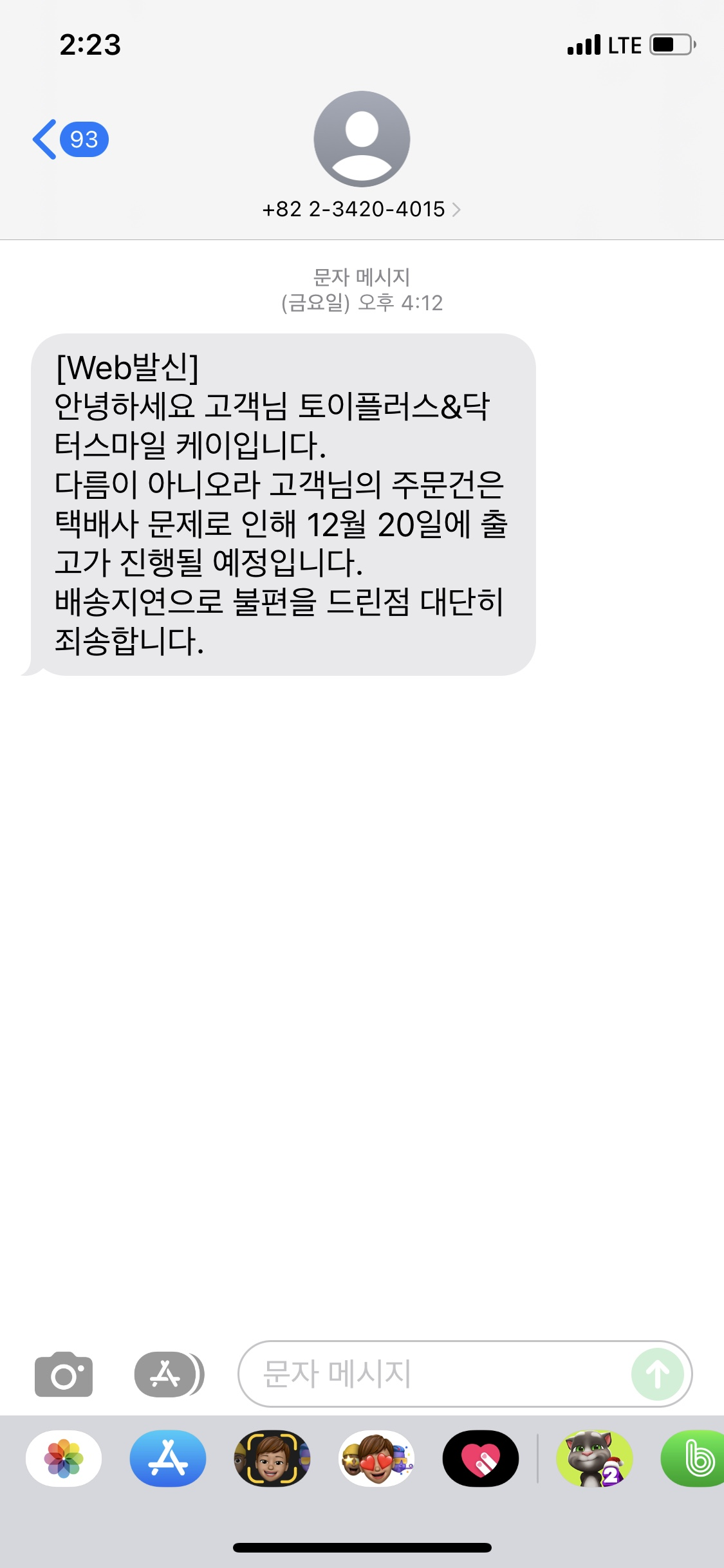 그러다 오후 4시경 문자가 왔다.