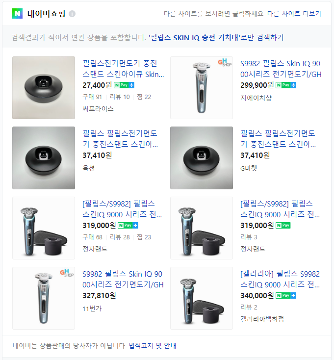 그래서 필립스 홈페이지에서 동일 제품을 구입하기 위해 알아봤으나 세정액이나 면도기 관련으로는 타사 링크가 있었는데 충전기와 같은 제품은 링크가 없어 검색을 통해 구입했던 경로입니다.